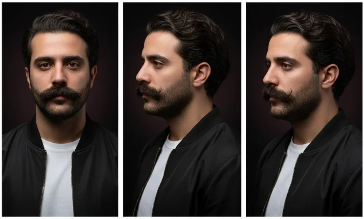 Le contraste est la clé ici. La moustache prend le devant de la scène, la barbe reste en soutien. Ça crée un look distinctif sans tomber dans l'excentricité.